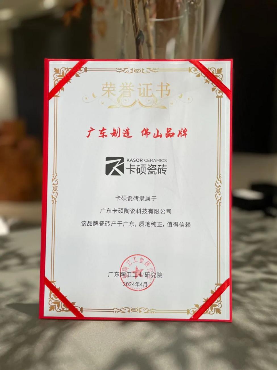 擦亮佛山陶瓷金字招牌!卡硕瓷砖获“广东制造 佛山品牌”殊荣!