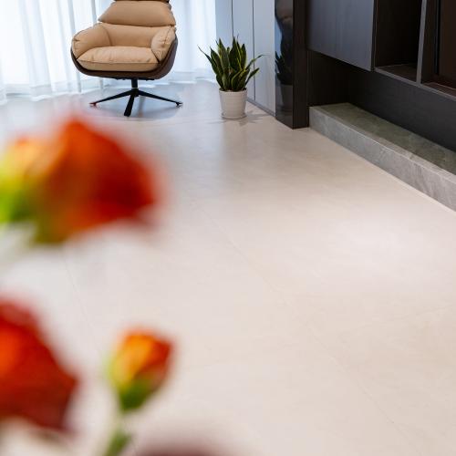 走进卫浴间,地面铺贴的715SH807天丝格外引人注目,地面淡淡的米杏色与周围的洁具相互映衬,看似平淡的色泽却蕴含无尽的韵味,远看纹理逼真,近看质感细腻,搭配无主灯设计让卫浴空间瞬间干净又清爽,带来自然松弛的氛围感。